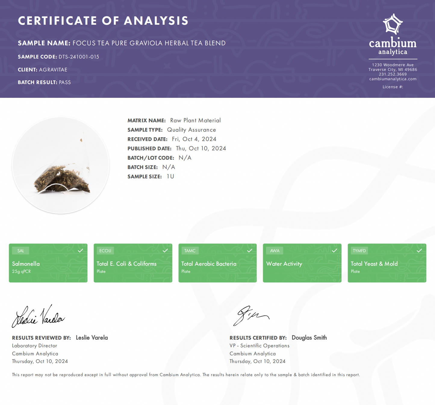 Click here to download our Certificate of Analysis (COA) to see our third-party testing results.